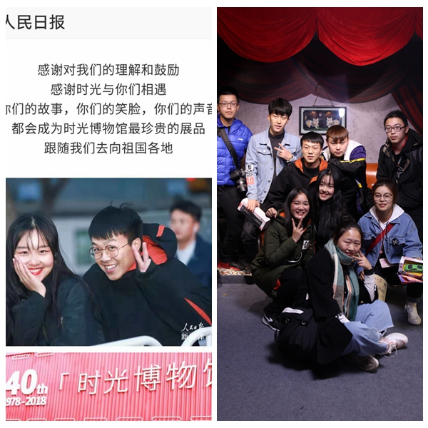瑟瑟秋风,挡不住师生们的热情。10月27日(星期六)下午,在学院蔡文书老师组织带领下,2018级新生和“爱雷锋”社团来到朝阳区三里屯,兴致勃勃地参观了由人民日报社组织举办的“时光博物馆”展览,在历史深处探寻祖国发展和时代变迁的足印,在寒风中被感动,被温暖。