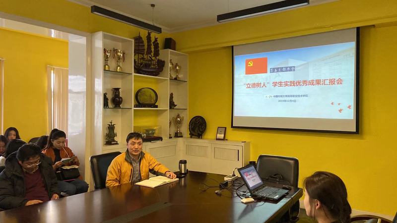 12月4日下午,学部第五党支部主办的“立德树人”学生实践优秀成果汇报会在一层会议室举行,入党积极分子陈浪、王继阳、金川子、彭睿智、陈旭5名学生代表分享了在中视前卫影视传媒有限公司参加国庆阅兵和“央视频”实习一线的成长收获。继续教育学部党总支书记兼高等职业技术学院院长屈善孝教授、高职学院全体党员和教师、2019级入党积极分子参加会议。汇报会由第五党支部书记蔡文书主持。