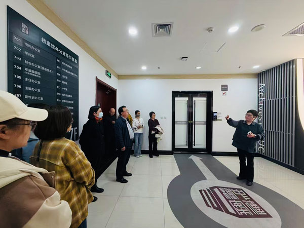 在姜馆长的引导下,教职工们先后参观了档案库房、中控室、电子档案阅档室、声像档案视听室、档案远程利用平台等功能区域。姜纳新馆长围绕档案馆“存量数字化、增量电子化、利用网络化、服务智能化、管理现代化”的核心原则,重点介绍了档案馆在整合全校档案资源、搭建统一管理平台、规范档案归集流程、保障档案信息安全等方面的务实举措,深入阐释了档案工作“为党管档、为校守史,留史资政、守史育人,以史为鉴、知史奋进”的使命任务。大家认真聆听讲解,虚心求教,详细询问档案数字化标准、电子档案管理规范、智能检索系统应用等问题,深入学习档案馆在推进档案管理现代化过程中的先进理念与实践经验。